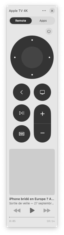 C’est fait ! Vous avez une réplique parfaite et tout aussi fonctionnelle que la télécommande de votre Apple TV. Vous pouvez tout gérer comme à votre habitude (médias, programmes…)