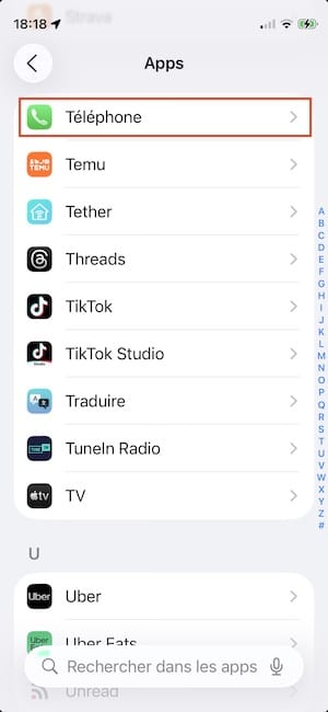 Maintenant, dans votre liste d’applications installées touchez en toute logique Téléphone.